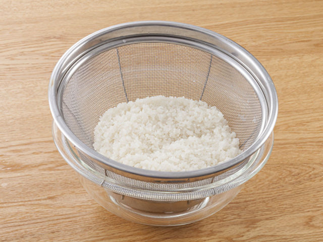 お米をといでザルに上げ、しっかりと水気をきることで、水加減が正確になります。ザル上げの時間が長すぎると、お米が乾燥してしまうので気をつけてくださいね。布巾などをかけておきましょう!!※調理時間以外に、炊飯に約1時間かかります。