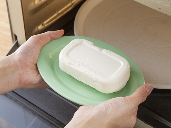 別のボウルに生クリームと残りの砂糖を入れ、泡立て器でツノが立つまで泡立てます。クリームチーズは電子レンジで軽く温めても、柔らかくなります!電子レンジでやってみよう★